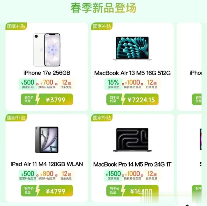 256GB的iPhone17e,支持500元国补、支持700元以旧换新、支持12期免息。