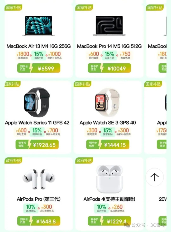 另一个是购买Mac,参与以旧换新可以补贴1500元。