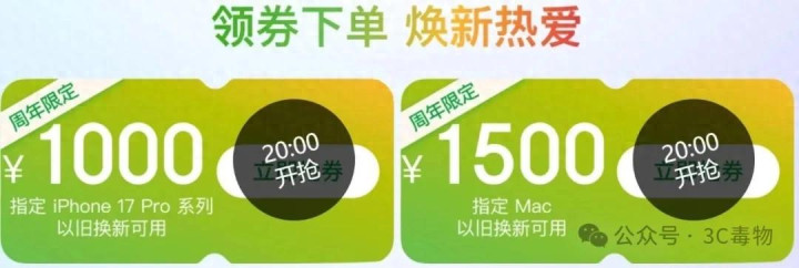 一个是购买iPhone17Pro系列,参与以旧换新可以补贴1000元。
